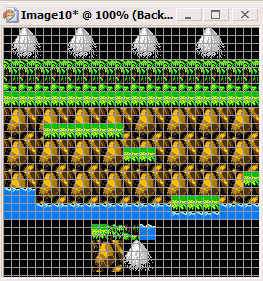 Que son los tiles? seguramente habran leido sobre ellos en numerosos tutoriales… Los tiles son pequeñas unidades graficas, de 8×8 pixeles, en el que se divide la pantalla. La megadrive en NTSC tiene una resolucion de 320×224 pixeles, asi que: 1 Tile : 8×8 pixeles = 64 pixeles Como un juego necesita o tiene escenarios mas grandes que una sola pantalla, devemos trabajar con estas pequeñas unidades graficas para poder repetirlas a lo largo de nuestros graficos, y asi ocupar la menor cantidad de memoria. La importancia del tile, radica ahi mismo, que es en logar pequeños graficos, que puedan ser reutilizados a lo largo de nuestro juego. Aqui muestro un ejemplo, diseñe un nivel del Contra muy simple con apenas 48 tiles. Si se fijan, en la parte de abajo,puse los 48 tiles, que componen la imagen superior. NOTA: Es muy importante aprender a trabajar con tiles, ya que es fundamental para poder programar algo “serio” en Megadrive o cualquier otra consola. Aconsejo el uso del programa “Paint Shop Pro” en especial la version 9, para la edicion grafica.Y los tutoriales los voy a hacer en base a este programa.EL Paint Shop pro de ahora en adelante lo llamare PSP Para ver una grilla de 8×8 en el PSP, vamos al menu “VER–> Cambiar Grilla…” y le damos las opciones 8×8 en la imagen y global. Deveriamos ver esto: Es la imagen, con una grilla de 8×8. Asi que podemos hacer nuestros tiles y repartirlos por la imagen. Los graficos que diseñemos pueden tener el tamaño que nosotros queramos, mientras sea multiplo de 8, 8×8, 16×8,32×32…etc Aqui tenemos un ejemplo mas visual de dos graficos, uno de 2×2 tiles y otro de 4×4 tiles. Los tiles se dibujan primero en X luego en Y, o sea, en una imagen de 40x28 tiles, primero se dibuja la primeras 40 lineas completas, y luego se dibujan las segundas 40 lineas... etc hasta la linea 28 Como vimos en la introduccion, la Megadrive maneja 4 planos de 16 colores. O sea, que cada plano de tiles puede tener como maximo 16 colores (15+1 de transparencia)