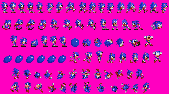 Que son los sprites? aunque seguro ya deben conocer todos la respuesta, son pequeñas imagenes de un tamaño especifico con la que se representan el personaje, objetos, etc... La Megadrive puede manejar hasta 80 sprites a la vez, y pueden ser de cualquier tamaño multiplo de 8 comprendido entre 8x8 y 32x32 pixeles (2x2 y 4x4 tiles) A diferencia de los tiles, los sprites se dibujan primero en Y luego en X Los sprites pueden tener transparencia. Cada sprite o conjunto de sprites puede tener un maximo de 15 colores,mas uno de transparencia.